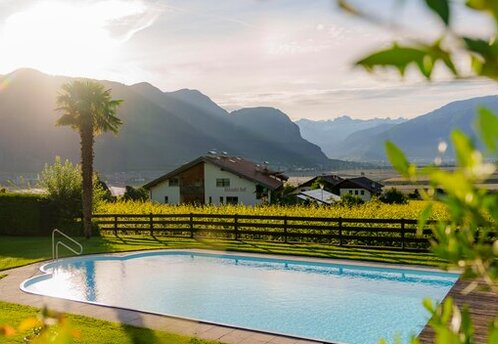 Genießen Sie den Panoramablick auf den Rosengarten bei einem köstlichen Glas Wein aus eigener Produktion. Die kleinen Gäste freuen sich über den Kinderspielplatz, die Tischtennisplatte und die Tiere auf unserem Bauernhof Wieserhof in Andrian gleich nebenan. Unsere Gäste können Äpfel, Eier und Apfelsaft aus eigener Erzeugung kaufen. Genießen Sie von Frühling bis Spätherbst einen unvergesslichen Urlaub in familiärer Atmosphäre. Die Sonne, das milde Klima und die Ruhe lassen Sie die Hektik des Alltags vergessen. In der Umgebung finden sie unzählige Wander- und Radwege, Sehenswürdigkeiten, Badeseen sowie einzigartige Ausflugsziele.